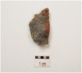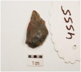 | Description / विवरण | A flake made on chert, bladescars on dorsal side, pointed distal end, broken on proximal end and use wear marks along cutting edge. |