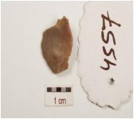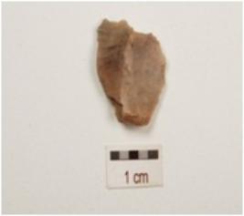 | Description / विवरण | A flake made on chert, prepared platform, prominent bulb on ventral side, blade scars on dorsal side, broken on distal end and use wear marks along cutting edge. |