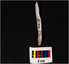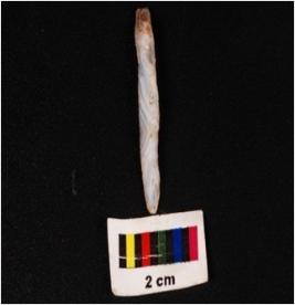 | Description / विवरण | Backed blade of agate with two ridge on the dorsal diffused bulb on ventral use wear marks on the cutting edges and pointed along the distal end. |
