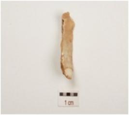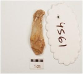 | Description / विवरण | A flake made on chert, cortex on dorsal side, unprepared platform, prominent bulb on ventral side and use wear marks along cutting edge. |