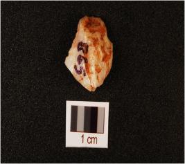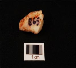 | Description / विवरण | A quartz flake with flake scars on surface and prepared platform, use wear marks on working edge. |