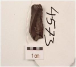 | Description / विवरण | Blade made on chert with flake scars on dorsal side, prominent bulb on ventral side and use-wear marks along cutting edges. |