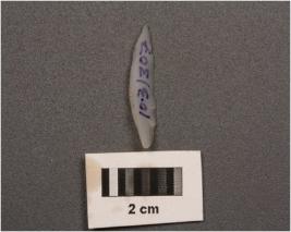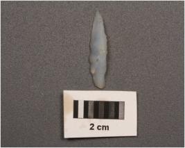 | Description / विवरण | A blade on chalcedony, cut wear mark on edge, mid ridge on dorsal. |