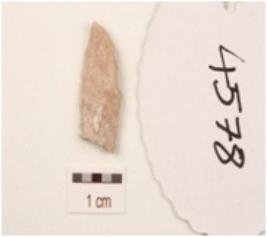 | Description / विवरण | Fragment of blade made on chert, double-ridge on surface and trapezoidal in section. |