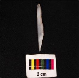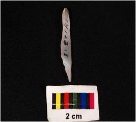 | Description / विवरण | Pen knife balde made of chalcedony, mid ride on dorsal ventral is smooth, one end is pointed and use wear marks on edge. |