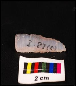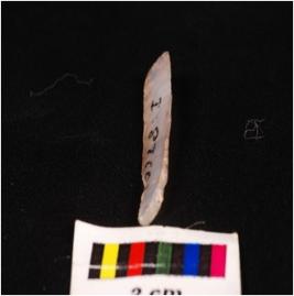 | Description / विवरण | Parallel sided blade of chacedony with double ridge on dorsal ripples on ventral side and use-wear marks on the cutting edges. |