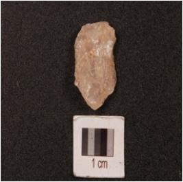 | Description / विवरण | A side scraper made on quartz with prepared platform, irregular along the cutting edges and smooth surface. |