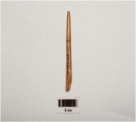| Description / विवरण | A bone point with a pointed end, polished surface, partly broken from both ends and oval in section. |