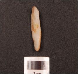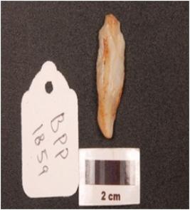 | Description / विवरण | A scraper made on quartz with a prominent mid-ridge on the dorsal side, flake scars and irregular along the cutting edges, smooth on ventral side. |