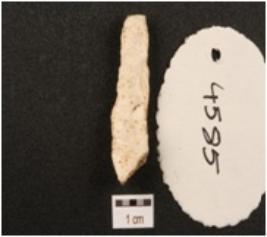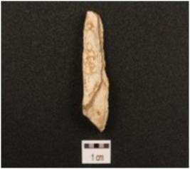| Description / विवरण | Flake made on chert with ridge on dorsal side and negative bulb on ventral side, prepared platform and use-wear marks along cutting edge. |