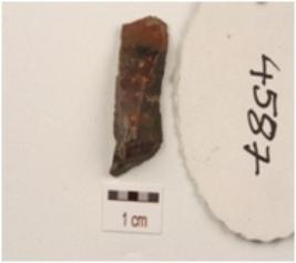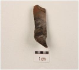| Description / विवरण | Flake made on chert with ridge on dorsal side, diffused bulb on ventral side, smooth surface and use-wear marks along cutting edge. |
