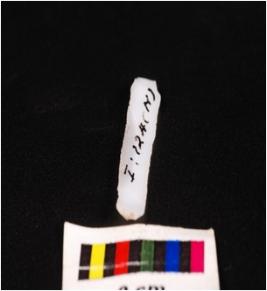 | Description / विवरण | Parallel sided blade of chalcedony with double ridge on dorsal trapezoidal section, diffused bulb on ventral and use-wear marks on the cutting edges. |