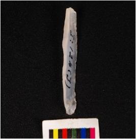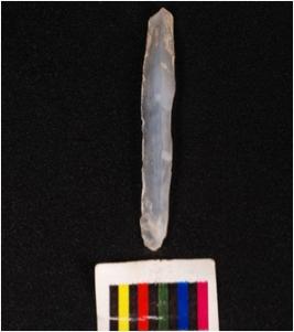 | Description / विवरण | Parallel sided blade, made of chalcedony mid ridge on dorsal ventral is smooth with diffuse bulb and use wear marks on edge. |