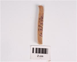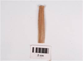 | Description / विवरण | A chert stone blade, two mid ridge on dorsal surface, ventral surface is smooth and prominent bulb at proximal end, use wear marks on edge. |