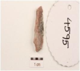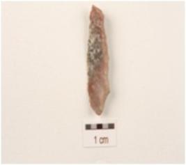 | Description / विवरण | Flake made on chert with chipped off dorsal side, and diffused bulb on ventral side, use-wear marks on cutting edges and triangular in section. |