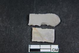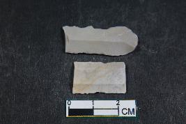| Description / विवरण | A blade with positive bulb of percussion on ventral side. It has one dorsal ridge and smooth surface.The smaller piee has two dorsal ridges. |