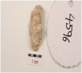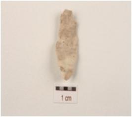 | Description / विवरण | Flake made on chert with chipped off dorsal side and diffused bulb on ventral side and use-wear marks on cutting edges. |