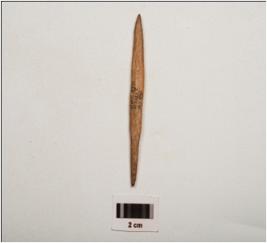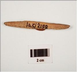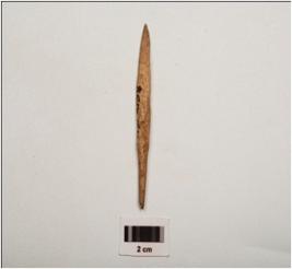 | Description / विवरण | A bone tang point with a tang at one end, pointed at other end. Partly smooth surface with light brown in colour and oval in section |