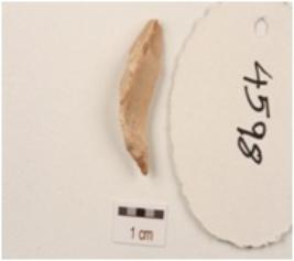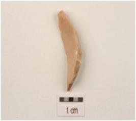| Description / विवरण | Flake made on chert, cortex visible on surface, use-wear marks along cutting edge and pointed distal end. |