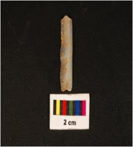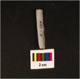 | Description / विवरण | Parallel sided chalcedony blade, two-ridge on dorsal, flat ventral and use wear on edge. |