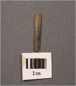 | Description / विवरण | Chalcedony parallel sided blade with flake scars on dorsal side and broken from proximal end. |