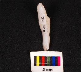 | Description / विवरण | Blunted blade with single ridge on dorsal diffuse bulb on ventral core given heat treatment and use-wear marks along cutting edge. |