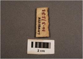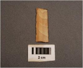 | Description / विवरण | A blade made on chert with two mid-ridge on dorsal side, use-wear marks along the cutting edges, trapezoidal section. |