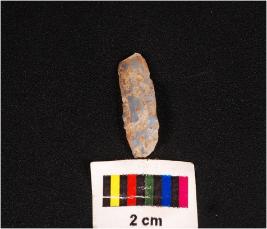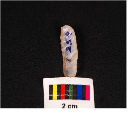 | Description / विवरण | Blunted blade one cutting edge, on ventral with irralure is visible, core given heat treatment, on ventral surface ripple marks are prominent, use-wear marks along the cutting edge and broken along distal end. |