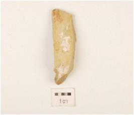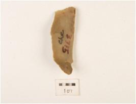 | Description / विवरण | Flake with diffused bulb on proximal end on ventral side near striking platform, slightly concave ventral side and flat surface. |