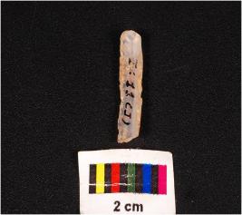 | Description / विवरण | Parallel sided blade with a ridge on dorsal surface, diffused bulb on ventral surface broken along distal end and use-wear marks along the cutting edge. |