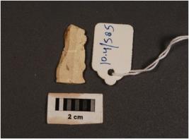 | Description / विवरण | Parallel shaped chert blade, two-ridges on dorsal and irregular edges, proximal end, white in colour. |