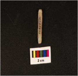 | Description / विवरण | Chalcedony blade, two ridges on dorsal with irregular edges. |