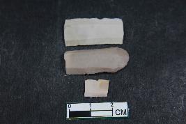 | Description / विवरण | Fragment of slightly cruved blades with three dorsal ridges having smooth surface. |