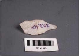 | Description / विवरण | A point made on quartz, pointed along distal end, prepared platform at the proximal end with a ridge on the surface. |