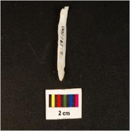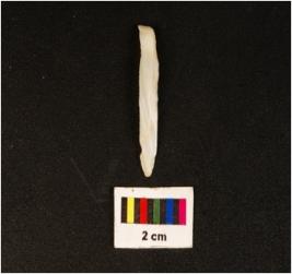 | Description / विवरण | Parallel sided microlithic blade with use wear marks on cutting edges and prominent mid ridge on dorsal. |
