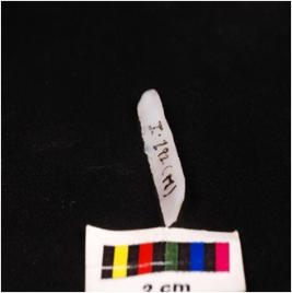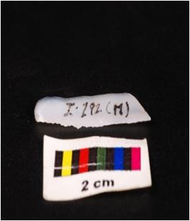 | Description / विवरण | Parallel sided blade with double ridge on dorsal intact proximal end with diffused bulb on ventral, broken distal end and use-wear marks on edges. |