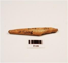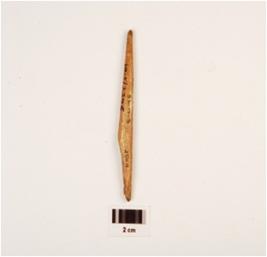 | Description / विवरण | Bone point with circular section, pointed both ends and rough surface, polished. |