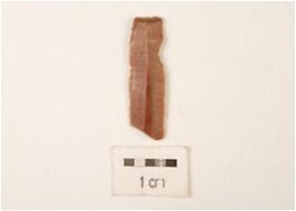 | Description / विवरण | Broken blade with middle ridge on dorsal side, retouches along working edges, broken along both sides and triangular cross section. |
