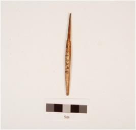 | Description / विवरण | Bone point with rectangular cross section, slightly broken at one end and rough surface with polished |