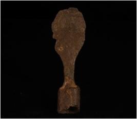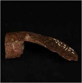 | Description / विवरण | Hoe- Shaped object socketed of the top by folded ends to provide for the handle. Front portion is partly broken and missing. |