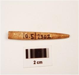| Description / विवरण | Fragment of bone point with circular-cross section, broken at one end, another pointed end smooth and polished surface. |