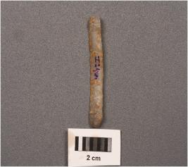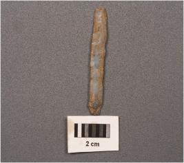 | Description / विवरण | Chalcedony parallel sided blade with mid ridge on dorsal surface. |