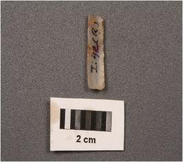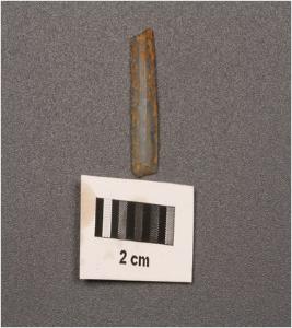 | Description / विवरण | Chalcedony parallel sided microlithic blade with a ridge and triangular section. |