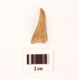 | Description / विवरण | A stone flake made on chert, red in colour, defused bulb on proximal end. |