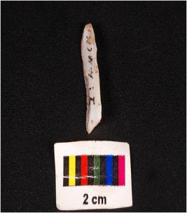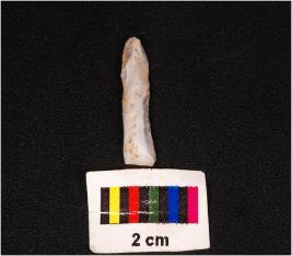 | Description / विवरण | Parallel sided blade made on chalcedony wavy ridge on dorsal ventral is smooth with diffuse bulb and use wear marks on edge. |
