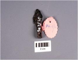 | Description / विवरण | An iron arrowhead with flattened and intact tip, part of a shaft is missing, corroded surface. |