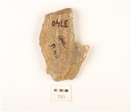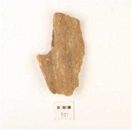 | Description / विवरण | Flake with a striking platform and a positive bulb, one end damaged with rectangular cross section. |