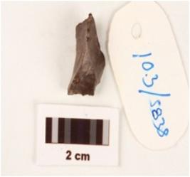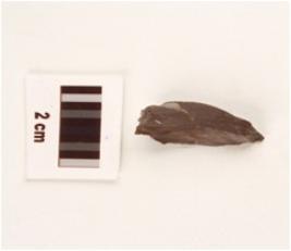 | Description / विवरण | A stone core flake made on chert, chocolate in colour, flake marks on surface and glossy. |