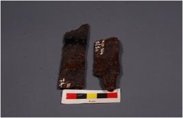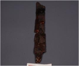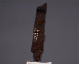 | Description / विवरण | Fragment of an iron knife with chemical treatment on the surface. Rectangular in section, broken. |