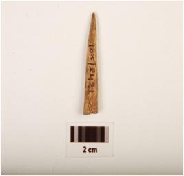 | Description / विवरण | Fragment of bone point, broken at one end, another end pointed, rough surface with polished |